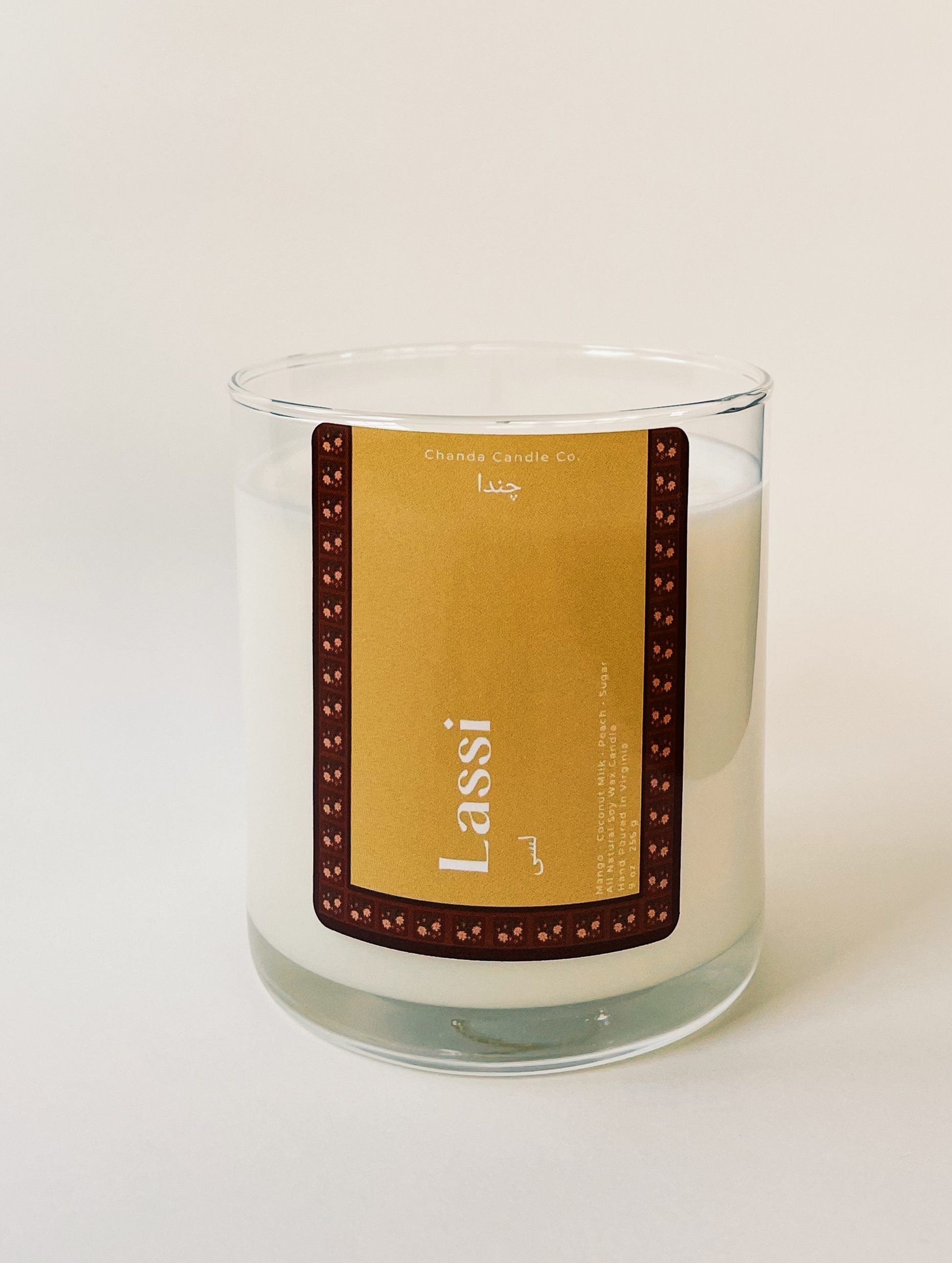 Lassi, typically made from mangos is a delicious drink for the hot summers in South Asia. This candle is scented with mangos, coconut milk, peach, and sugar to bring you a fresh, fruity, and almost identical scent of lassi.